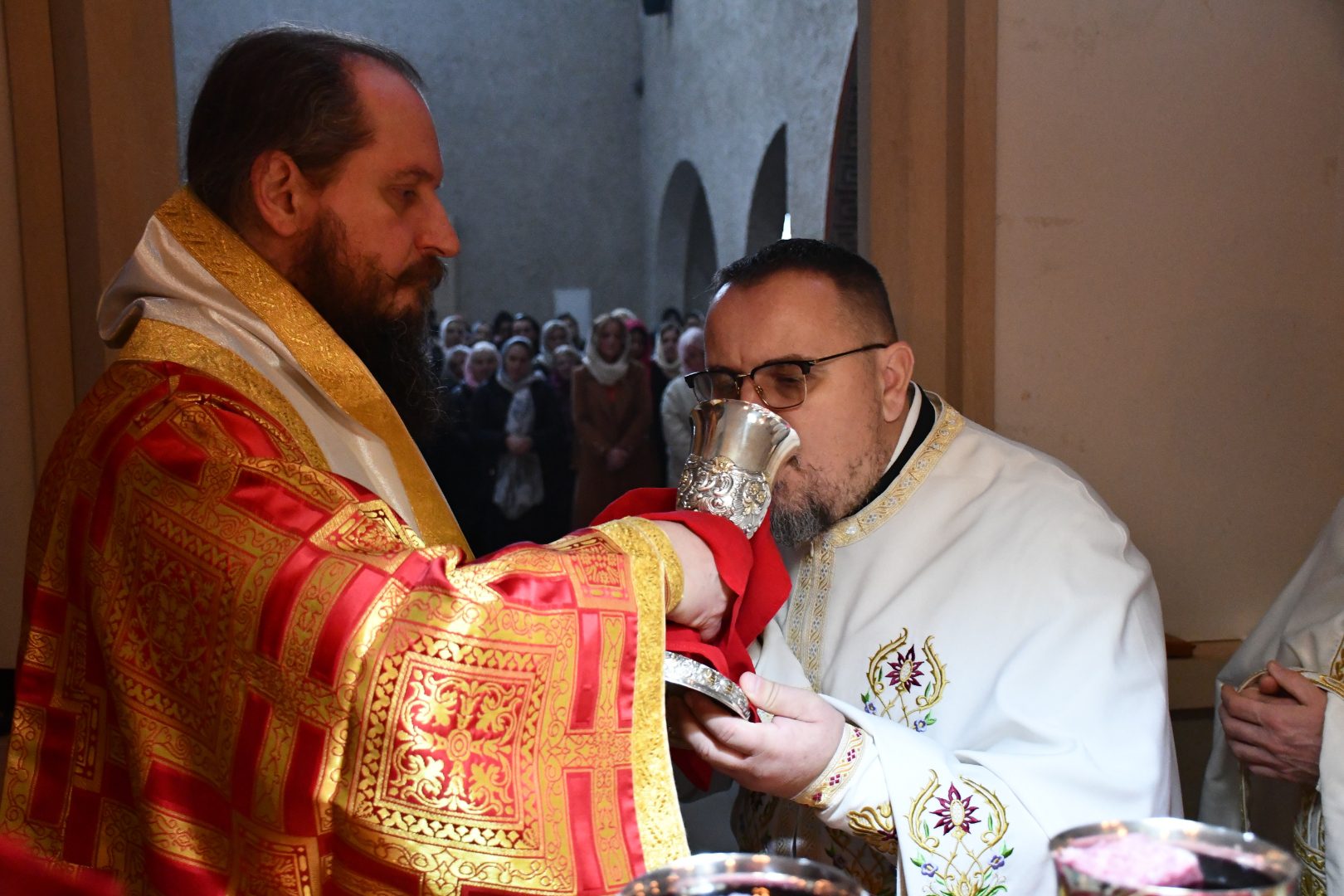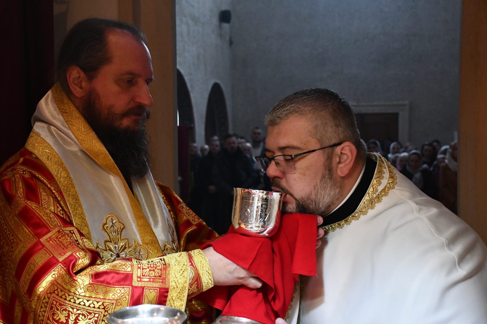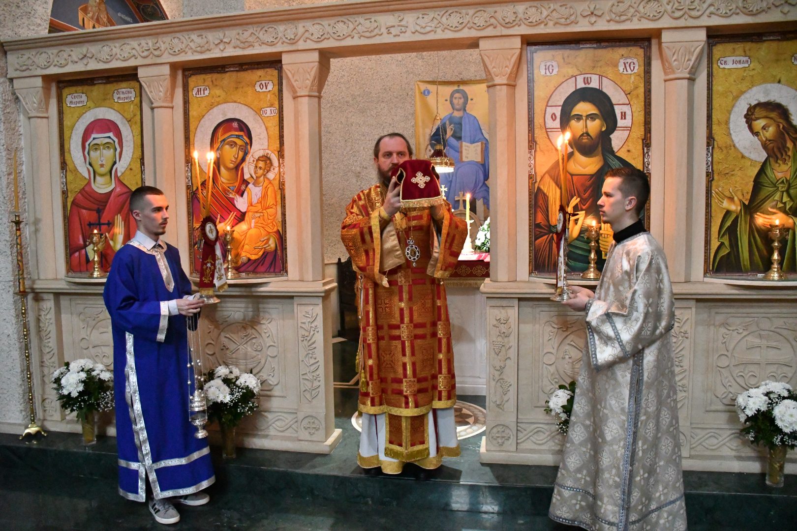 Епископу су саслуживали: архимандрит Варнава (Дамјановић), игуман Јеротеј (Влајковић), јеромонах Филарет (Шарић), Епархија бањалучка, протопрезвитер Горан Травар, Невен Маринковић, Ален Марић, Милош Црепуља, Недељко Јакшић, презвитер Дејан Лаловић и протођакон Немања Рељић.