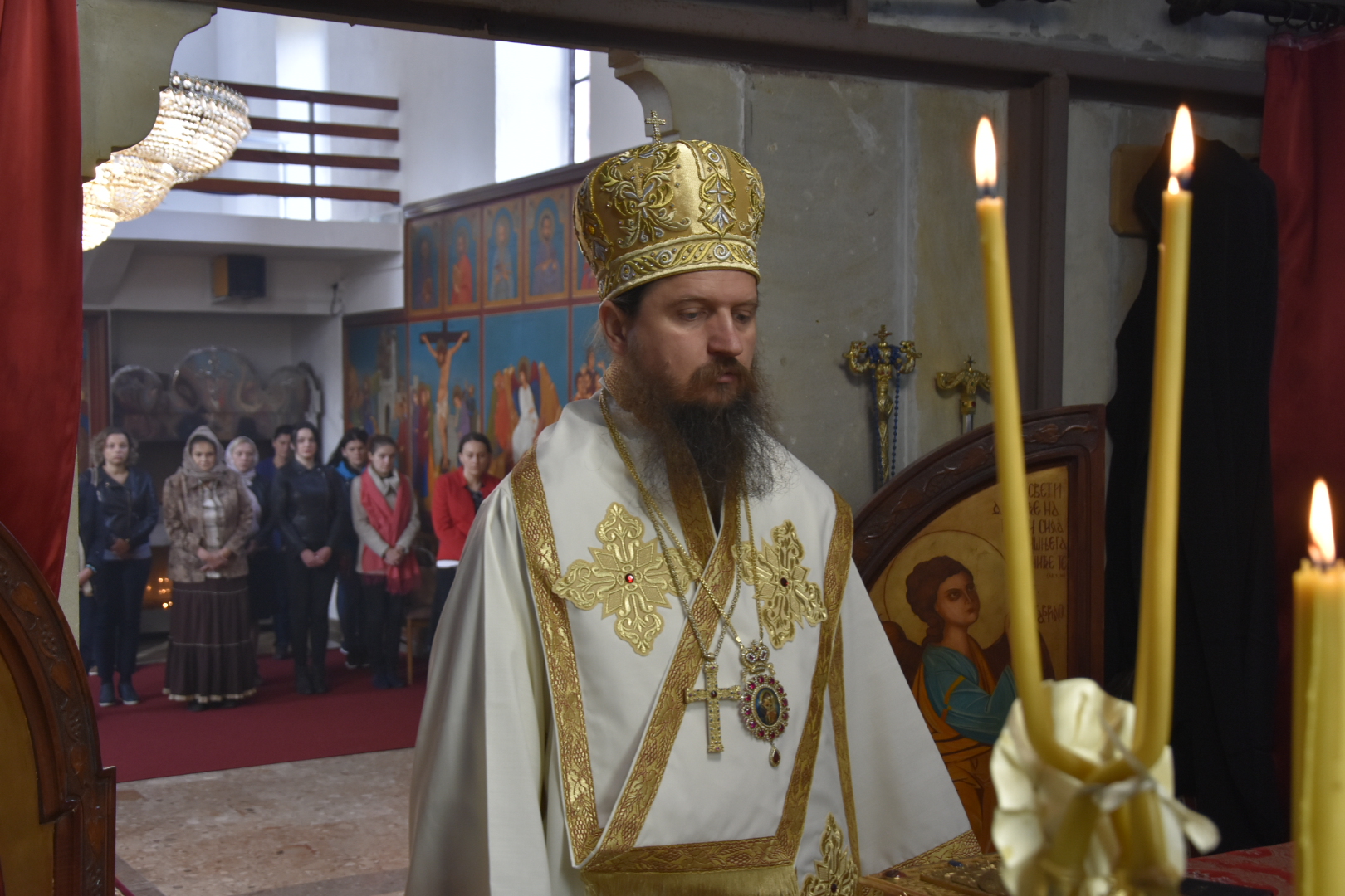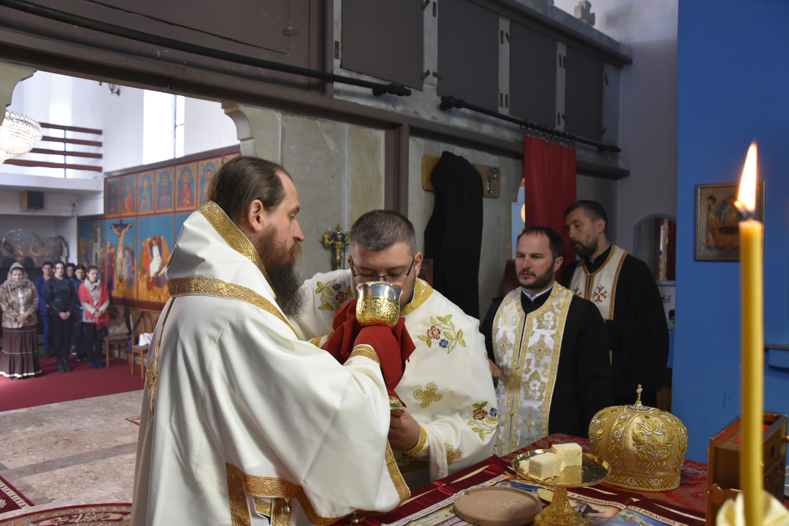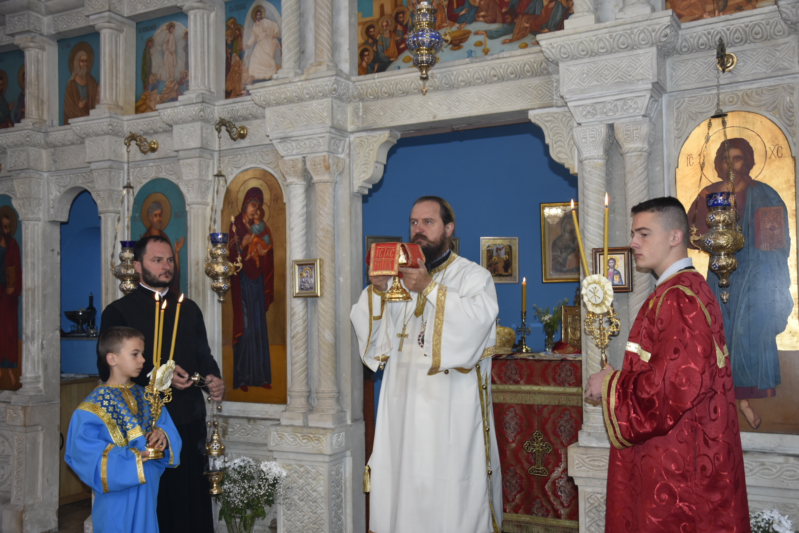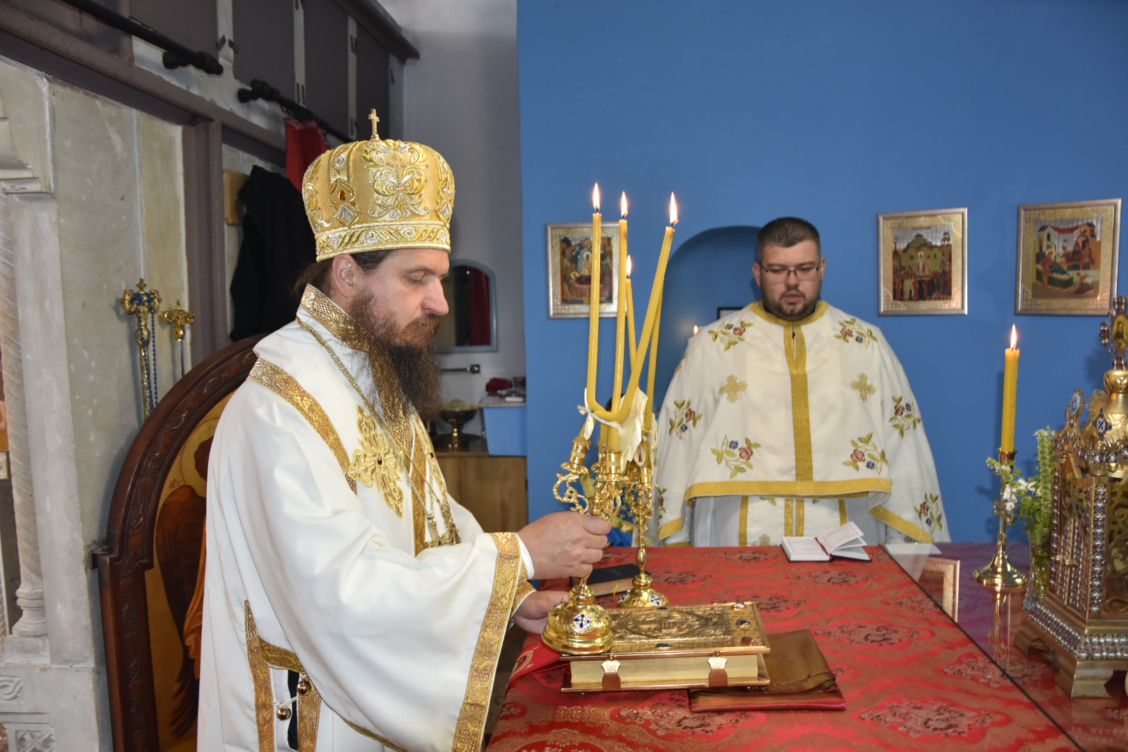 Његовом Преосвештенству саслуживали су: протопрезвитер-ставрофор Саша Црљић, протонамјесник Ален Марић и епархијски ђакон Немања Рељић.